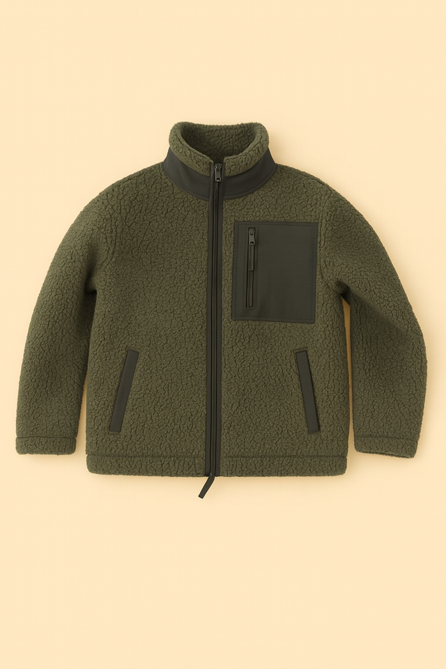 Das doppelseitige Sherpa-Material mit farblich abgestimmtem Fleece-Innenfutter sorgt für hohen Wärmerückhalt, während funktionale Details den Style abrunden.